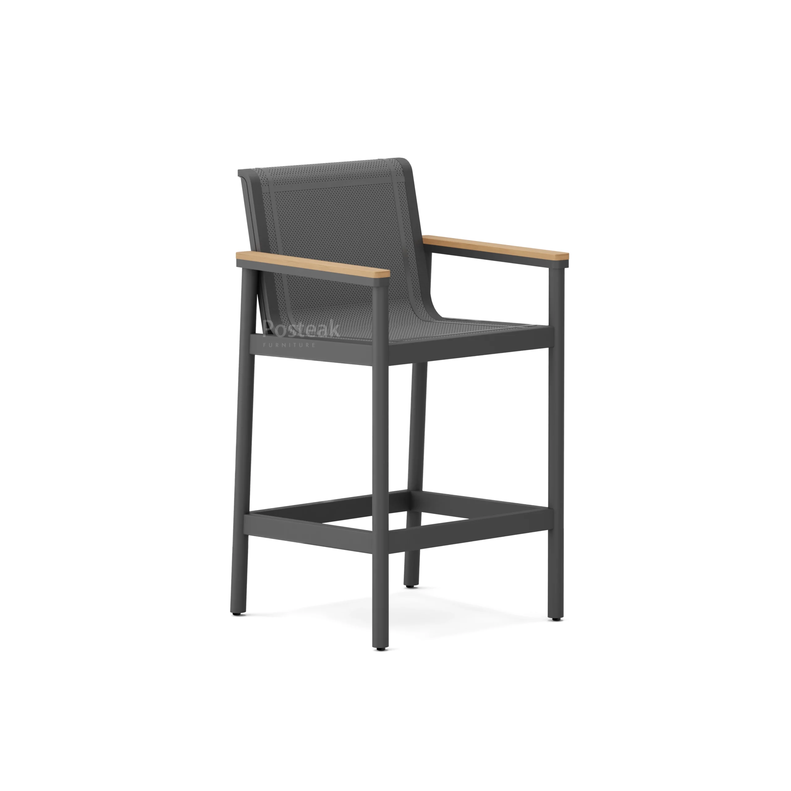 Showcases contemporary outdoor design with a sleek powder-coated aluminum frame engineered for long-lasting weather resistance. Combined with premium Batyline sling, offering breathable comfort, durability, and low-maintenance performance. Accented with natural teak wood armrests, each piece brings warmth and sophistication—creating a modern outdoor statement with timeless appeal.