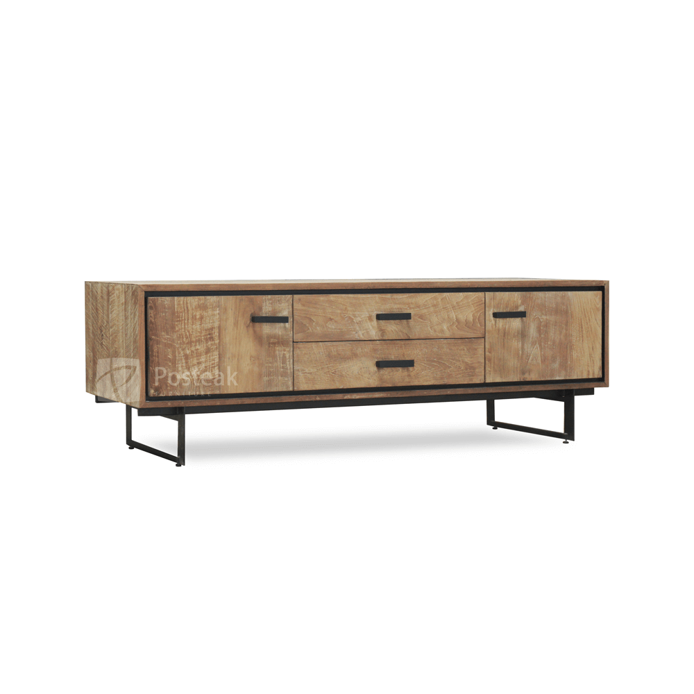 A contemporary modern tv plasma made of old teak laminate with modern iron styles. Equipped with 2 doors and 2 drawers